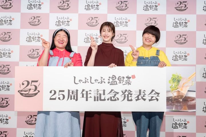 しゃぶしゃぶ温野菜は、25周年を記念してグランドメニュー刷新&創業祭キャンペーン実施を発表。CMキャラクターを務める松本若菜さんと、応援ゲストとしてガンバレルーヤさんが登場した「しゃぶしゃぶ温野菜25周年記念発表会」が2025年4月8日開催されました。終始明るく盛り上がった発表会の様子をレポート!