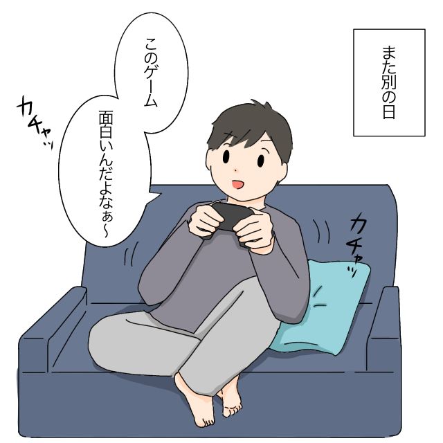 「このゲーム、面白いんだよなぁ~」そう言いながらゲームに夢中のたかしさん。