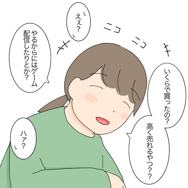 「いくらで買ったの?高く売れるやつ??やるからにはゲーム配信したりとか?」ニコニコしながらそういうかなえさんに驚くたかしさん。