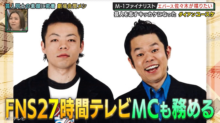 芸歴25年のアラフィフ芸人とは、お笑いコンビ・ダイアンのユースケのこと。ダイアンといえば、かつて漫才頂上決戦「M-1グランプリ」に2年連続で決勝進出し、「第53回上方漫才大賞」で大賞を獲得。活動拠点の大阪でレギュラー番組を7本持つほど売れっ子になると、40代前半だった2018年に上京した。近年では、大型特番『FNS27時間テレビ』の総合司会を務め、レギュラー番組を多数持っていることでお馴染みだ。