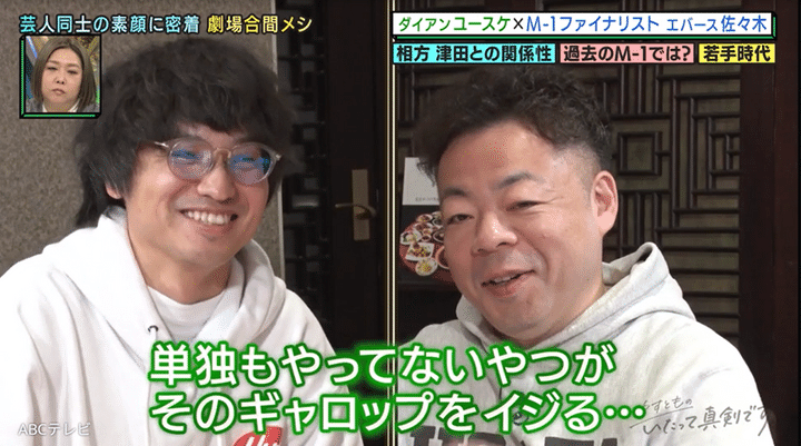 また、佐々木がダイアンのラジオで知ったギャロップ・林健が話題に出ると、ユースケは、「ギャロップとかやっぱり漫才がすごい」と称賛。そして、「単独もやってへん奴がそのギャロップをなんかイジる……(というのはダメ)っていうのでまあ一応、大変なこともやらなアカンっていうのでやっている感じ」と、笑いながら語った。