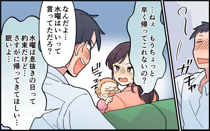 ・この夫「息抜きは必要」だと? だったら、ワンオペ育児を毎日している、奥さんに「自由時間」や「息抜きの日」が必要なんじゃない。バカ夫はわからないけど「育児は常に24時間勤務」です。