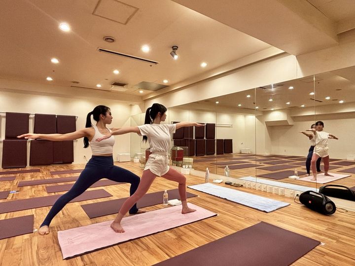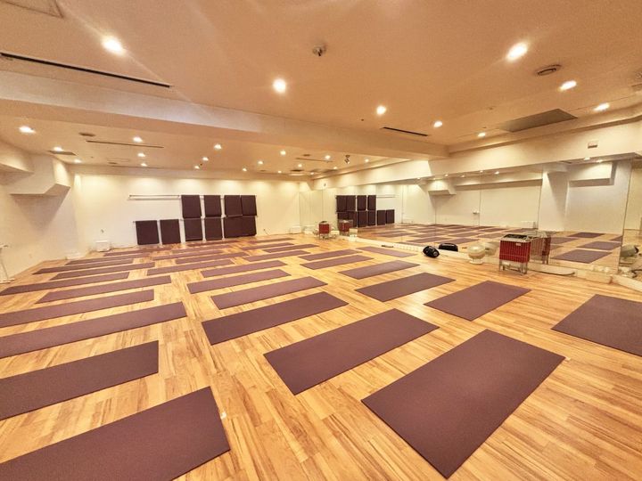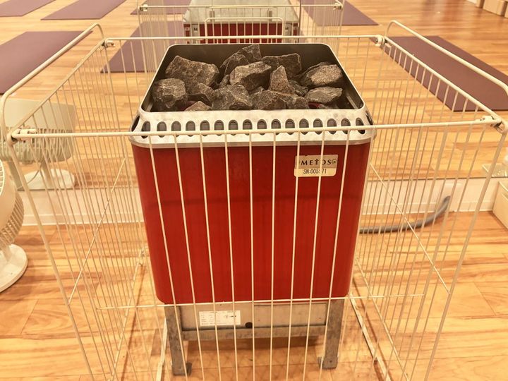 準備ができたら、さっそくヨガスタジオへ。池袋店のヨガスタジオは最大40人が入れるほど広さで、1レッスンあたり平均20人前後の受講者がいるのだとか。サウナストーブが焚かれているので、スタジオに入った瞬間からじんわり汗が出てきました。