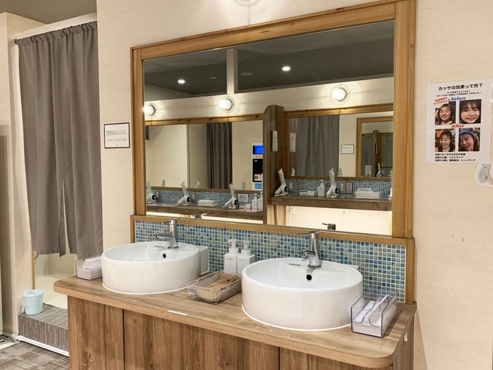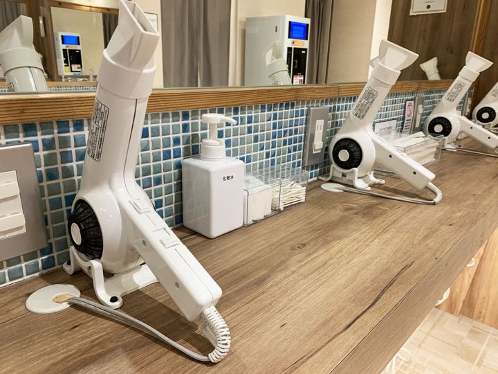 ドライヤーのほかに、化粧水やコットン、綿棒なども用意されています。必要最低限のものは揃っているので、手ぶらでの参加もOKです。