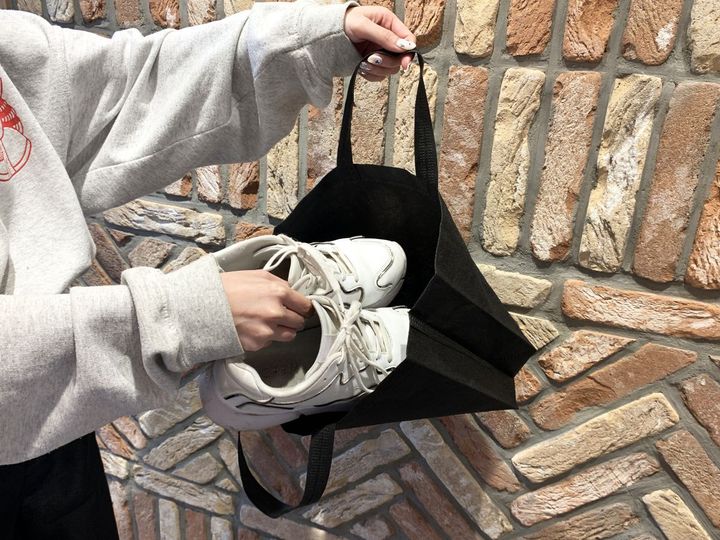 スタジオ内は土足厳禁。下駄箱の代わりに専用の袋が用意されているので、靴は袋に入れてくださいね。