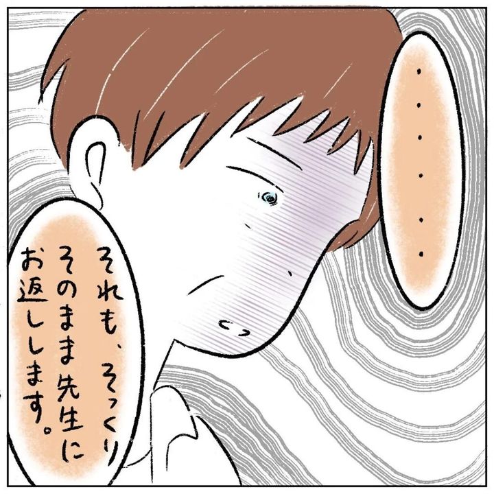 性根先生が必死に嘘で取り繕う様子を黙って見ていたまるさんのおお母さんでしたが、「それもそくりそのまま先生にお返しします。」とうつむいて静かに言いました。