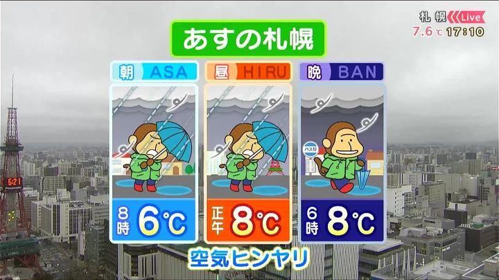 あす16日(水)の札幌です!朝昼晩の天気をもんすけでお伝えします!