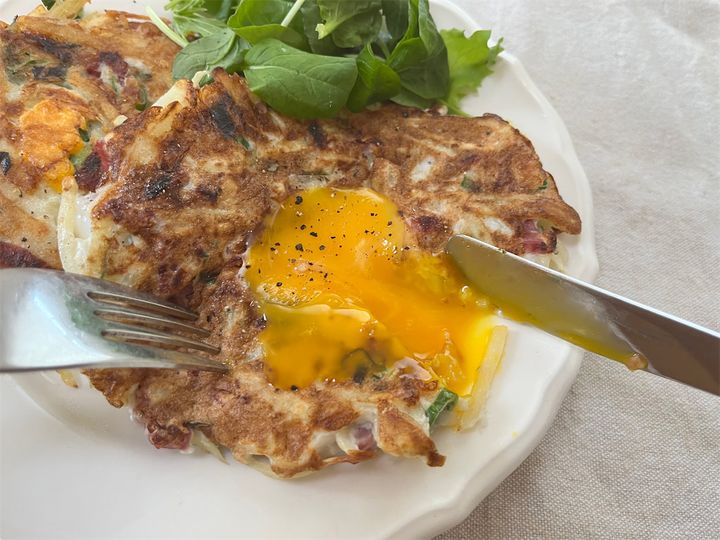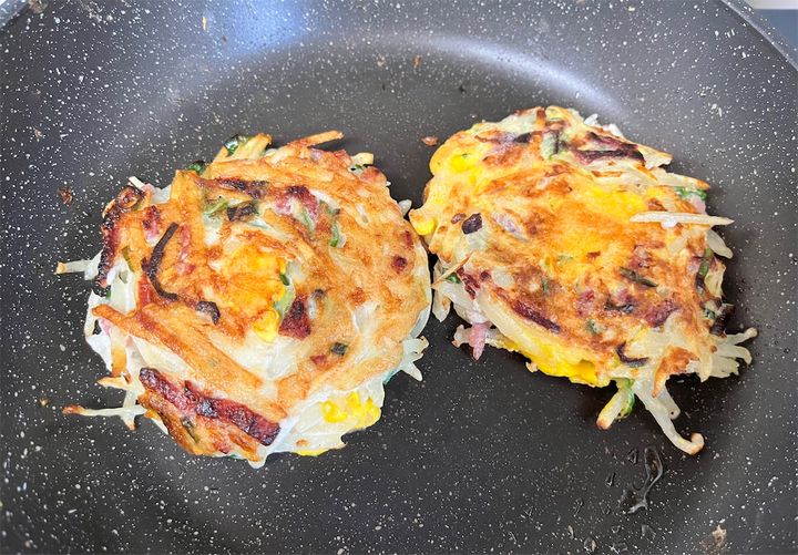 3. 【驚愕の1140万回再生】海外発!千切りポテトと卵で「黄金焼き」焼こう!生地はふんわり黄身とろ~り♡