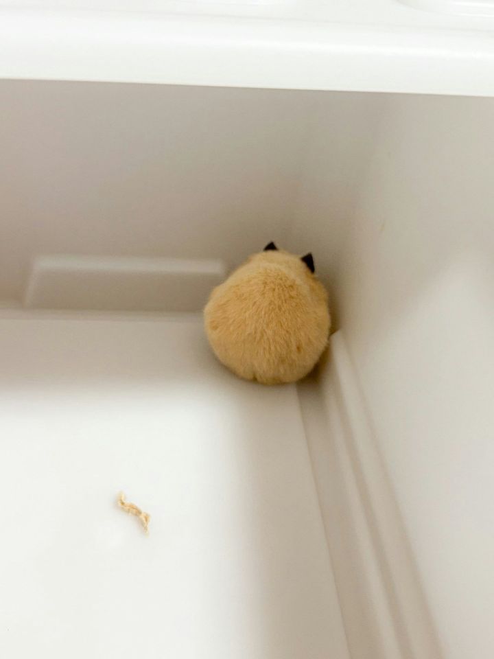 3. 「リアルすみっこぐらし」ケージ掃除中、いじけるハムスターの背中に2.8万いいね「ぷんすこ感」