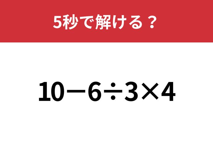 大人なら正解できないと恥ずかしいかも!?「10−6÷3×4」5秒で解ける?