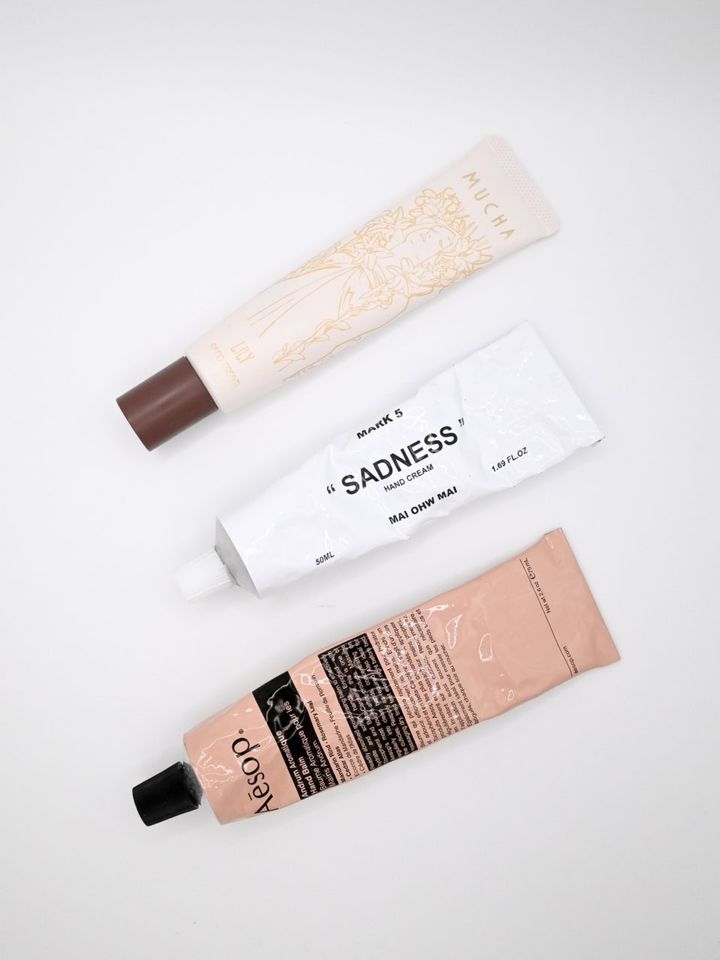 洗面台以外にも、デスクの横とベッドサイドにハンドクリームを常備しています。旅行や出張のときも兼ボディクリーム用途で持っていきます。手に塗ってこれは違う! と思うほどのハイクオリティ系ハンドクリームもたくさんあるんですが、香りでこの3つがお気に入り。
