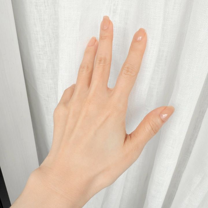 自然光だとこんな感じです。美容ライターという職業上の利便性として、ハンドケアをしっかりしておくとリップやアイシャドウの色出しのときにも質感や色のイメージがしっかり出るので便利です。