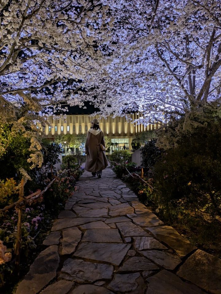 スカイガーデンは通常午後8時までですが、桜ライトアップ期間中は午後9時まで開園してくれています。