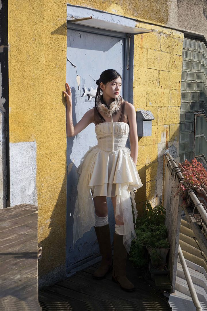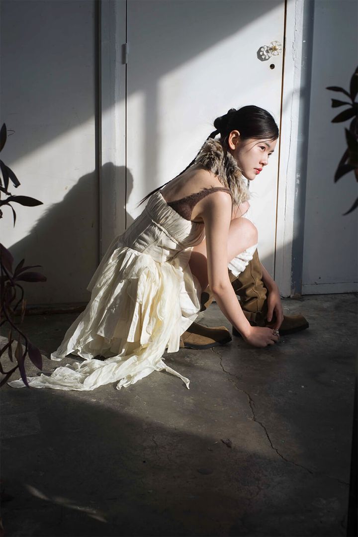 dress by KEYICHUAN, earrings by DONGHEISANBAI, socks and shoes stylist’s own