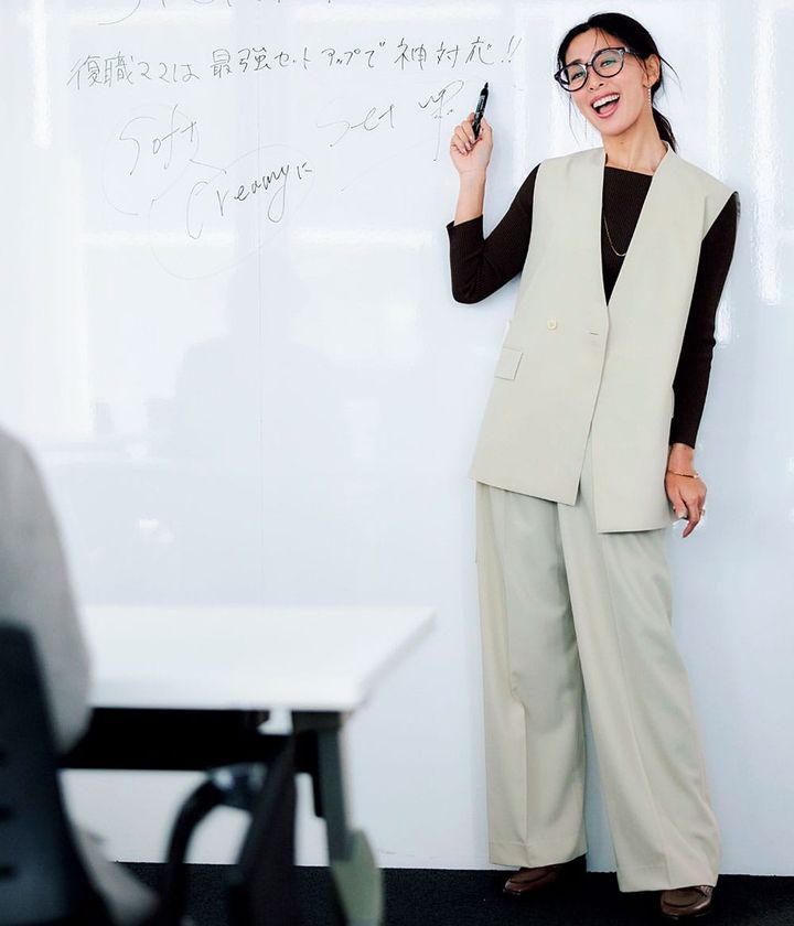 復職ママのリアルな悩み第1位は「まず、何を着るか問題」。リクルートスーツは堅すぎるし、甘すぎると若作りに見えそう……。【セットアップ】が大豊作な今季、復職のあるあるシーンの悩みは着映えてコーデに迷わないセットアップで吹っ飛ばしましょう!