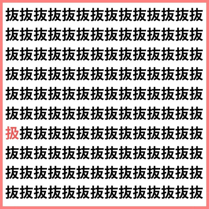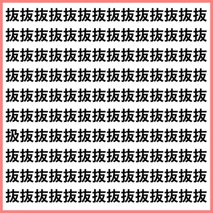 たくさんの「抜」の中に、1文字だけ違う漢字が混ざっています。
