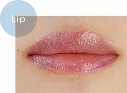 Dのリップを唇全体に塗り、上からEのリップを重ねる。青みと透明感が増し、アイメイクの雰囲気とマッチ。