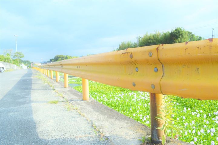 山口県:ガードレールが黄色い