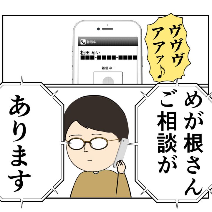 めいさんはめが根さんに「ご相談があります」と電話をかけました。