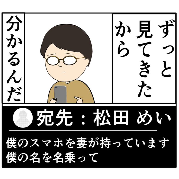 「ずっと見てきたから分かるんだ」と悲しそうな表情を浮かべるめが根さん。ジュリ実さんに持って行かれたスマホとは別のスマホを手に取り、めいさんにメッセージを送りました。「僕のスマホを妻が持っています。僕の名を名乗って」