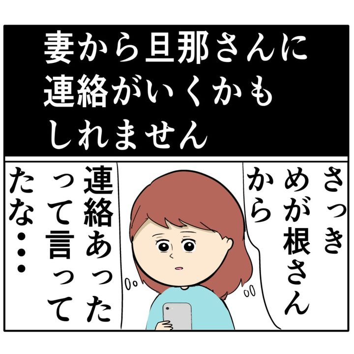 「妻から旦那さんに連絡がいくかもしれません」めが根さんからのメッセージを見ためいさんは、「さっきめが根さんから連絡あったって言ってたな・・」とろみ緒さんが会う約束をしたのはジュリ実さんだと確信。