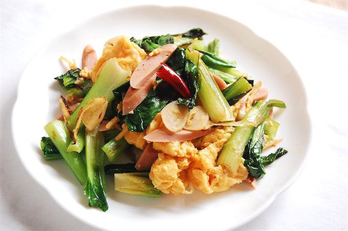 ナンプラーを助けたい!「小松菜と魚肉ソーセージと玉子の炒め物」