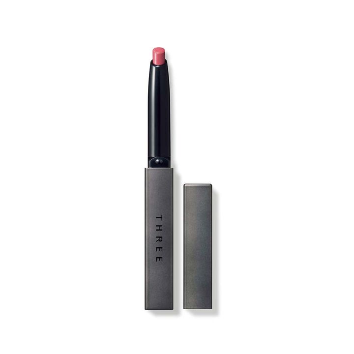 深みのあるベリーのニュアンスを宿したロージーピンクリップ。約5mmのスリム形状なので輪郭もキレイに塗れる。¥4,070/THREE[限定品]