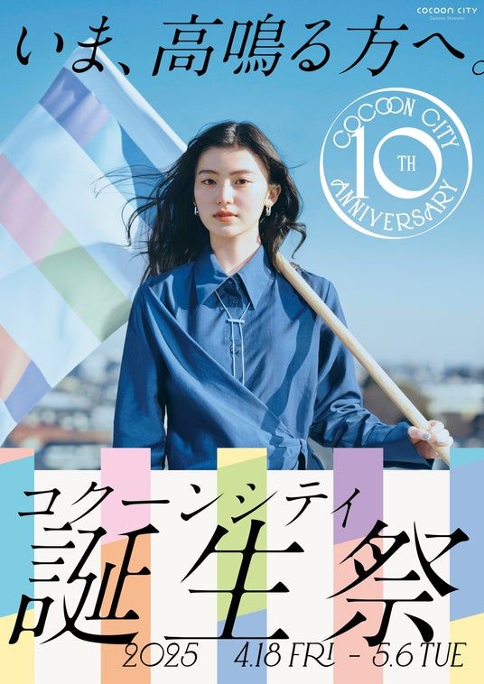キービジュアルのモデルには、俳優の小川李奈さんを起用。ワクワクやドキドキが満載、新しい風が吹くコクーンシティへと、みんなを力強く導いていく様子が表現されています。