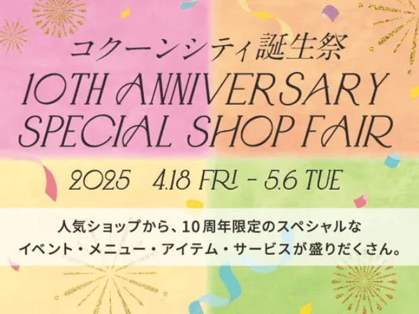 【さいたま新都心】コクーンシティが10周年! 4/18(金)~5/6(火・振休)「コクーンシティ 誕生祭」は特別企画が満載です