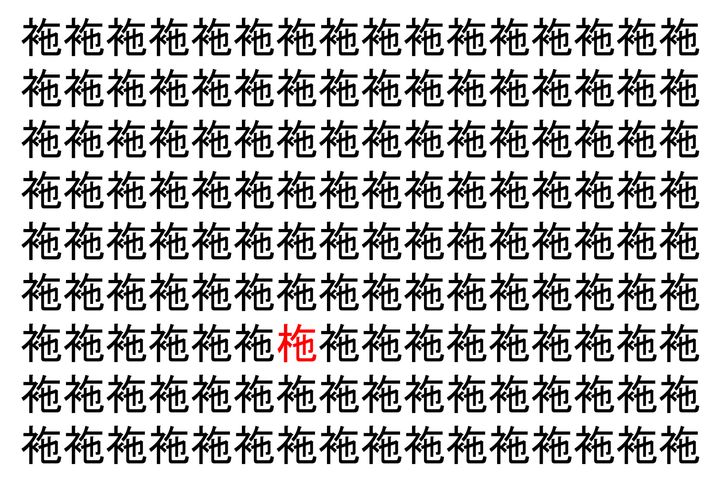 【脳トレ】「袘」の中に紛れて1つ違う文字がある!?あなたは何秒で探し出せるかな??【違う文字を探せ!】