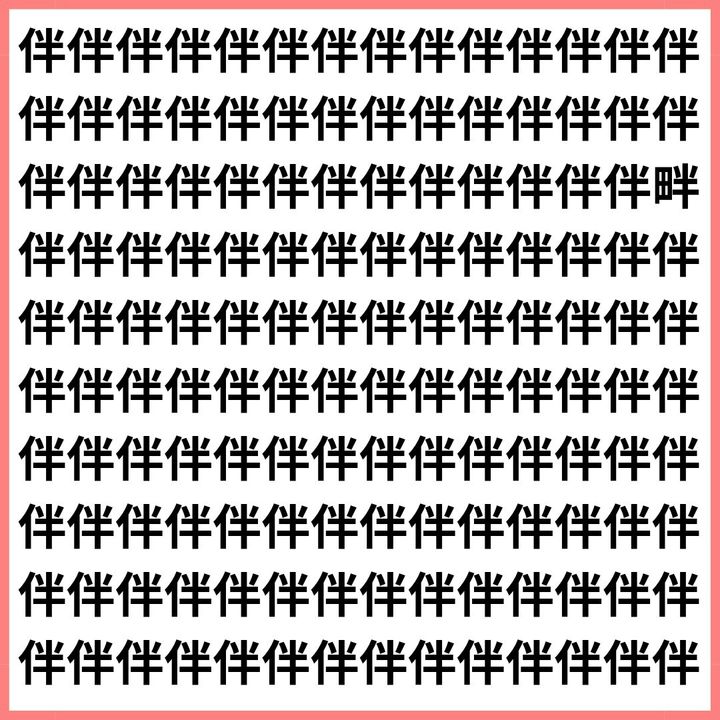たくさんの「伴 」の中に、1文字だけ違う漢字が混ざっています。