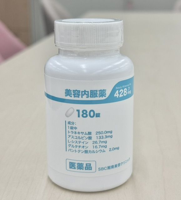 美白や美肌効果を目的とした内服薬を組み合わせたもの。SBCでは、トラネキサム酸、L-システイン、ビタミンC、タチオン、パントテン酸Caなどの有効成分を含む「四合剤SBCオリジナル美容内服薬」を自社開発していて、シミや肝斑、くすみの改善に効果が期待できるとされています。