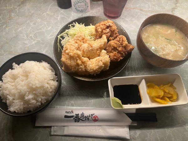 見てくださいこのボリューム! 一番唐揚げは1個1個の大きさもしっかりあるため、食べ応え抜群です。 むねからは、塩味なのでお好みでわさび醤油をつけるのもオススメです。