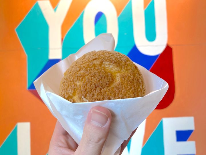 「BlissCAFE」のなかでも特に「このクオリティでこの価格!?」と驚いてしまうのが、子どもから大人まで人気の「クッキーシュー」240円。生地の中にはカスタードと生クリームを合わせたディプロマットクリームが入っていて、カスタード特有の卵とクリームそれぞれの風味がほどよく感じられる味わいになっています。
