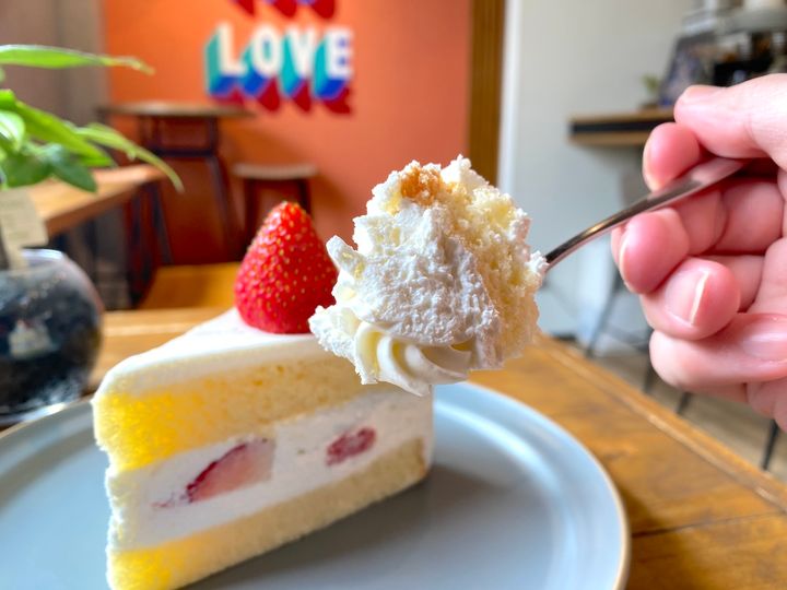 続いて紹介したいのが、シンプルだからこそお店の味が出やすいといわれる王道の「ショートケーキ」650円。こちらでは生クリームなど2種類以上の素材をブレンドしたホイップクリームを使用していて甘さは控えめ。