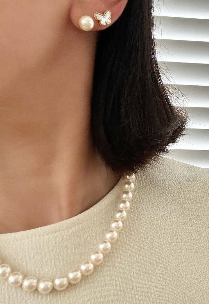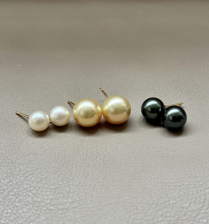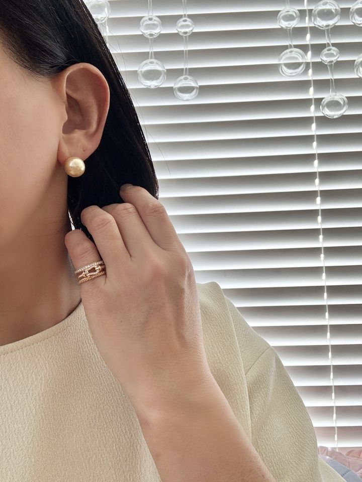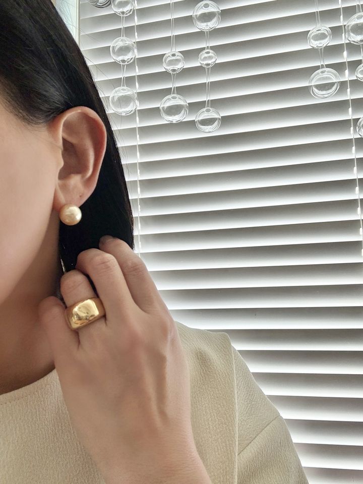 大粒ピアスは少し黄身がかっているので、パールというよりゴールドジュエリー感覚で楽しんでいます。