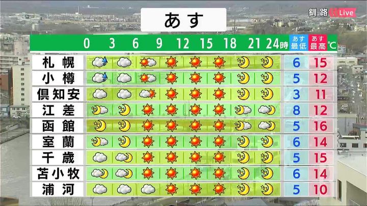 ・あすの札幌の朝昼晩の天気