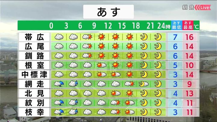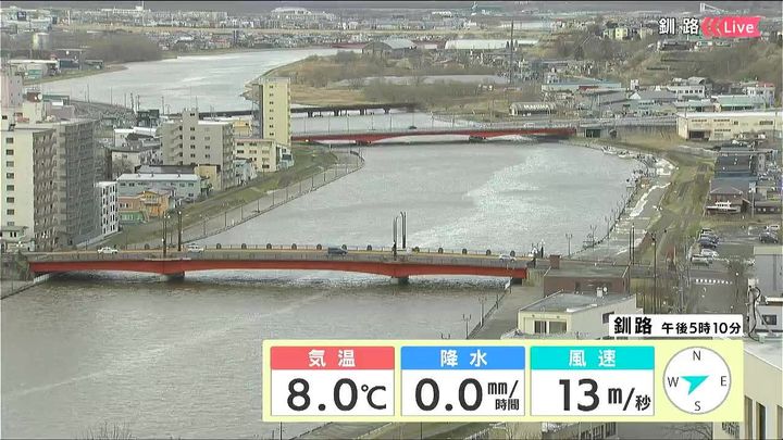 背景は16日午後5時ごろの釧路情報カメラ