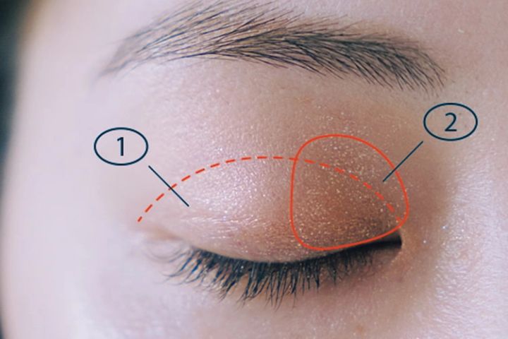 を上まぶた広めに、を上まぶたの目頭側に塗る。