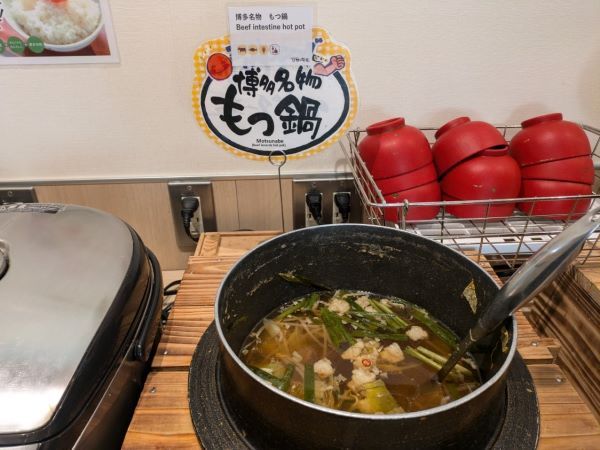 博多の代表的な鍋「もつ鍋」は、具沢山で朝食にぴったりのあっさり系。