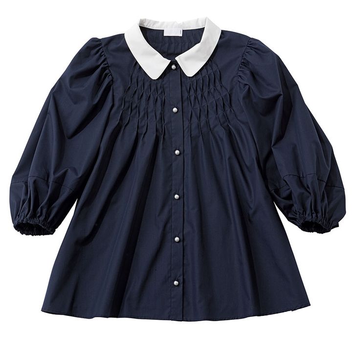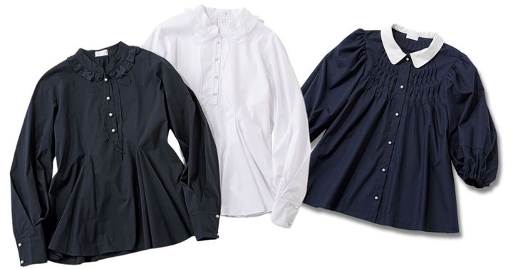 可愛らしさと上品さを兼備する 着回し力抜群な紺ブラウスが登場!