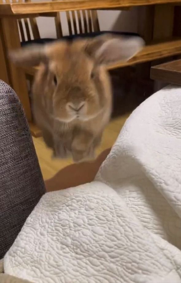 どこにいてもすぐ飛び乗ってくる!甘えん坊のウサギに「メロメロです」「目にも止まらぬ速さ!」