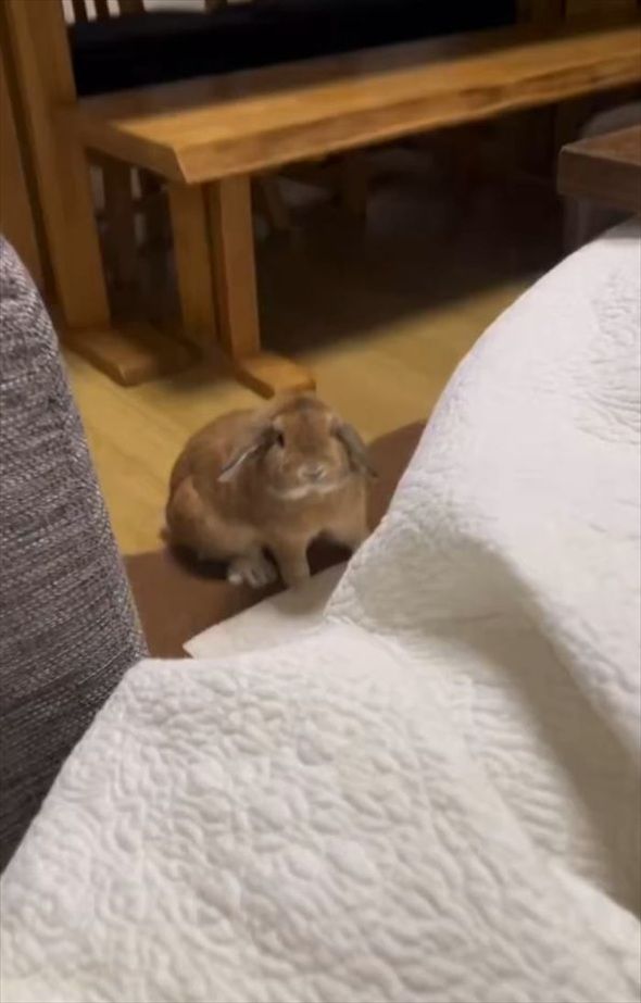 飼い主さんを見つめるウサギ。 この子が飼い主さんが大好きで甘えん坊だとよく分かるワンシーンが反響を呼んでいます。