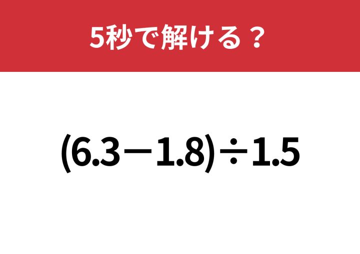 3. 小数の計算って難しいかも?「(6.3−1.8)÷1.5」5秒で解ける?
