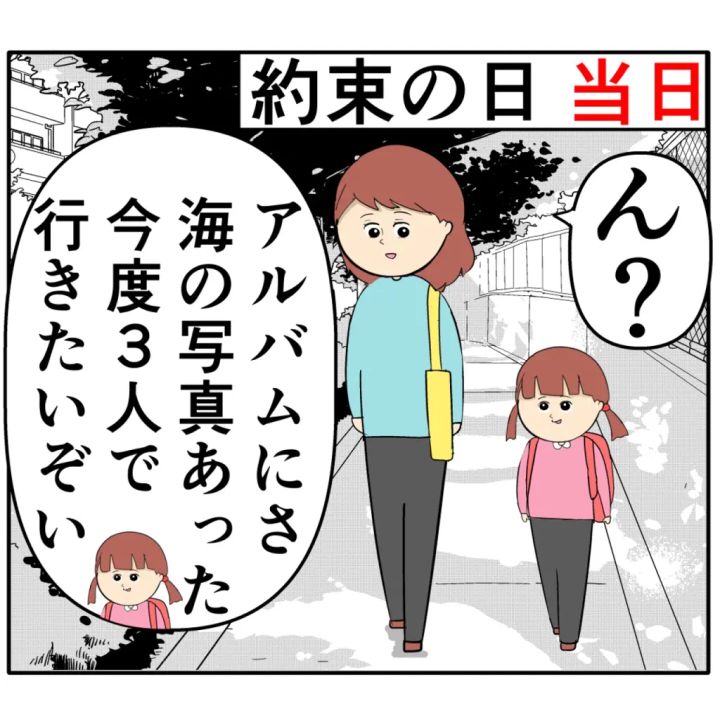 「ん?」とめいさんが聞き返すと、「アルバムにさ、海の写真あった。今度3人で行きたいぞい」と無邪気にあかりちゃんが言いました。