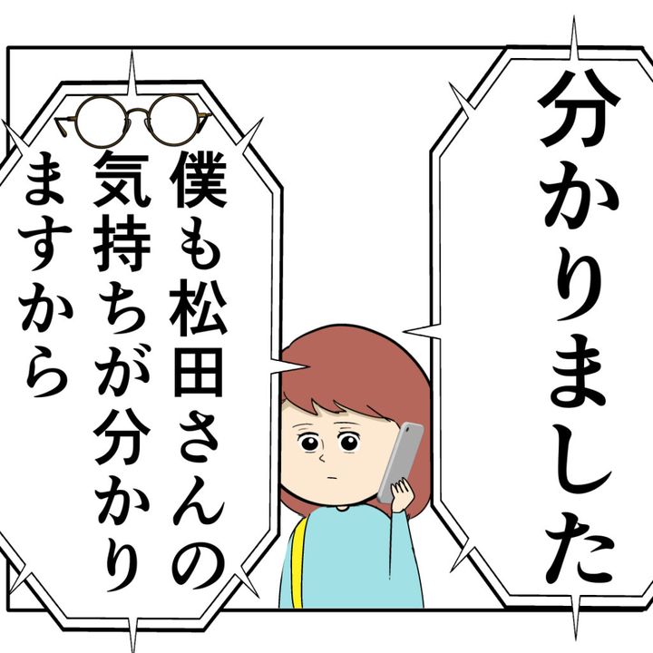 めが根さんは「分かりました。僕も松田さんの気持ちが分かりますから」とめいさんの気持ちに共感し、ジュリ実さんに会った時のろみ緒さんの対応を見たいというめいさんの相談を了承しました。