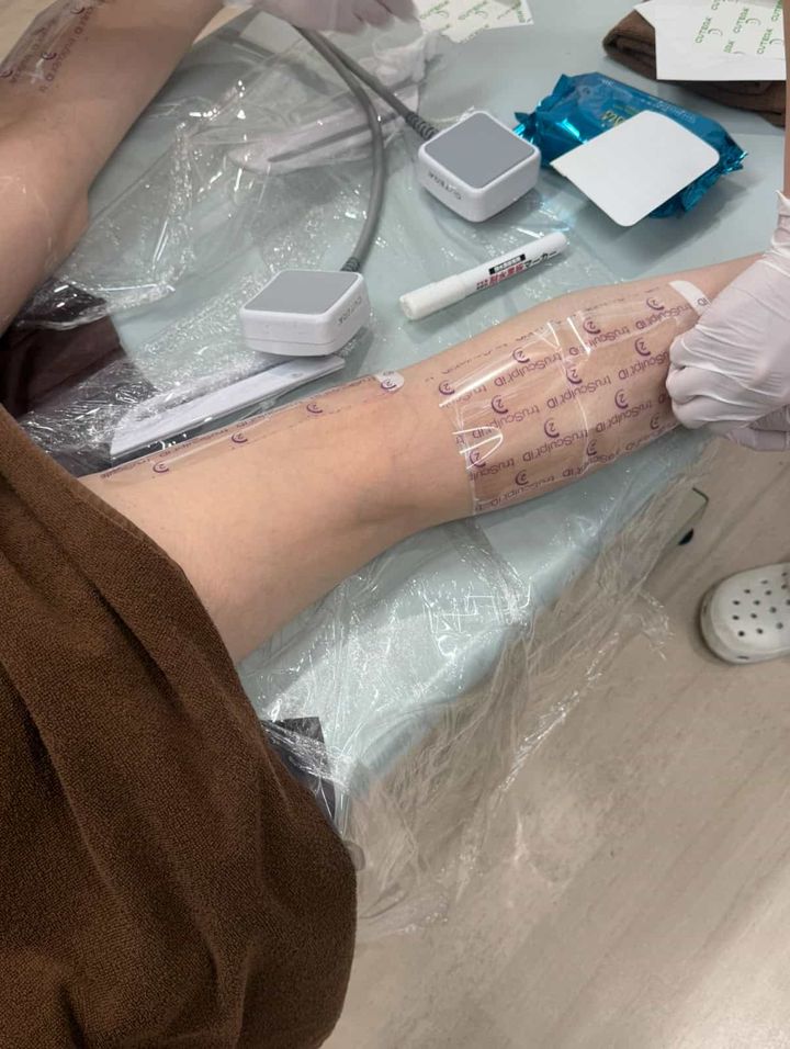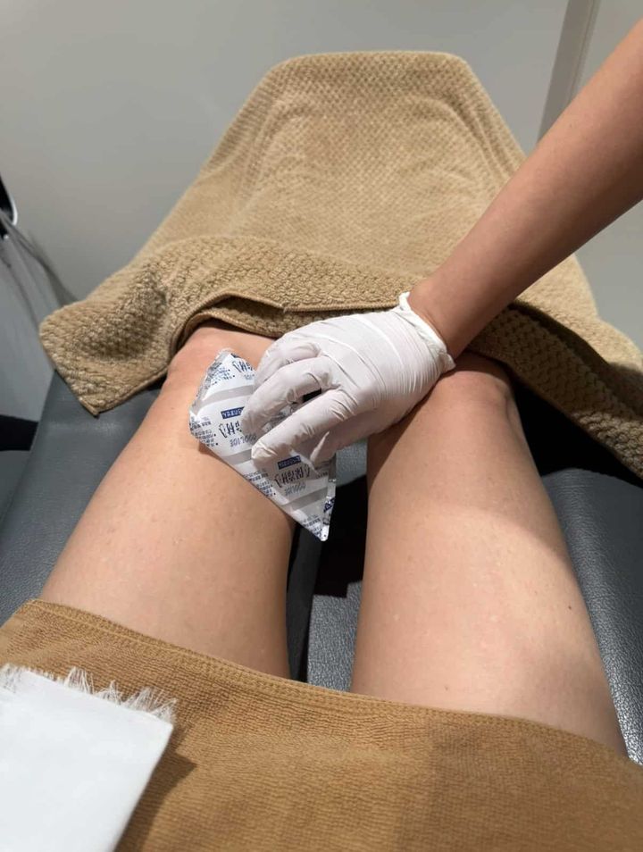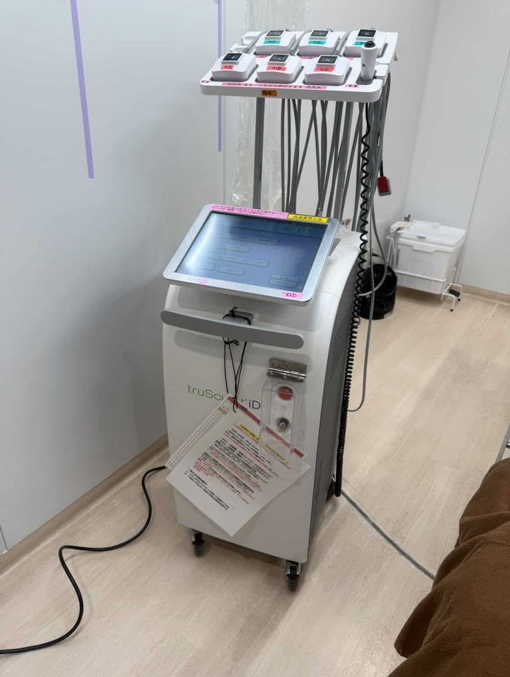 体の4箇所にしっかりマーキングをして同時に機械を装着しました。機械を装着した部分が吸われる感じがして、吸われた部分が徐々に冷たくなってきます。でも、冷たいのは部分的なので、耐えられる冷たさでした。40分ですが、大丈夫かどうか確認してもらえるので、快適に過ごせました。終わった後は、少し赤みがあったのですが、赤みっもすぐ引いたので安心でした。