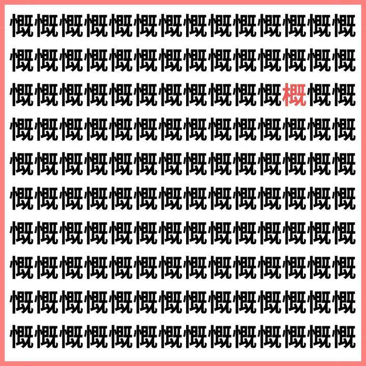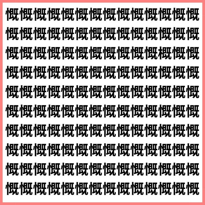 たくさんの「慨」の中に、1文字だけ違う漢字が混ざっています。