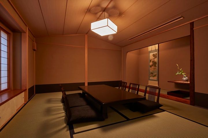 2階のお座敷は、お食事だけでもok。貸切りも可能で、予約すれば芸舞妓さんを招いてお座敷遊びも体験できます。