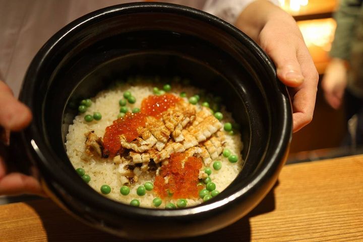 〆は土鍋で炊いた穴子ご飯!宝石のように輝くいくらもたっぷり♡